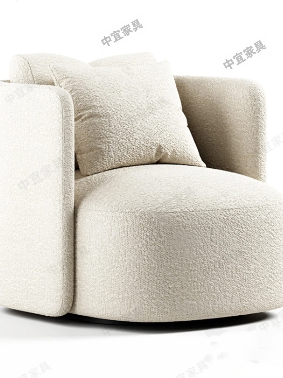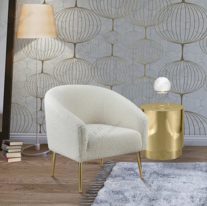 北欧スタイルの軽快でラグジュアリーなデザイン!シングルサイズのラムウール生地使用リラックスソファチェア - 小型リビングやホテルのための優雅な選択。特別な時間を演出する空間を提供します!