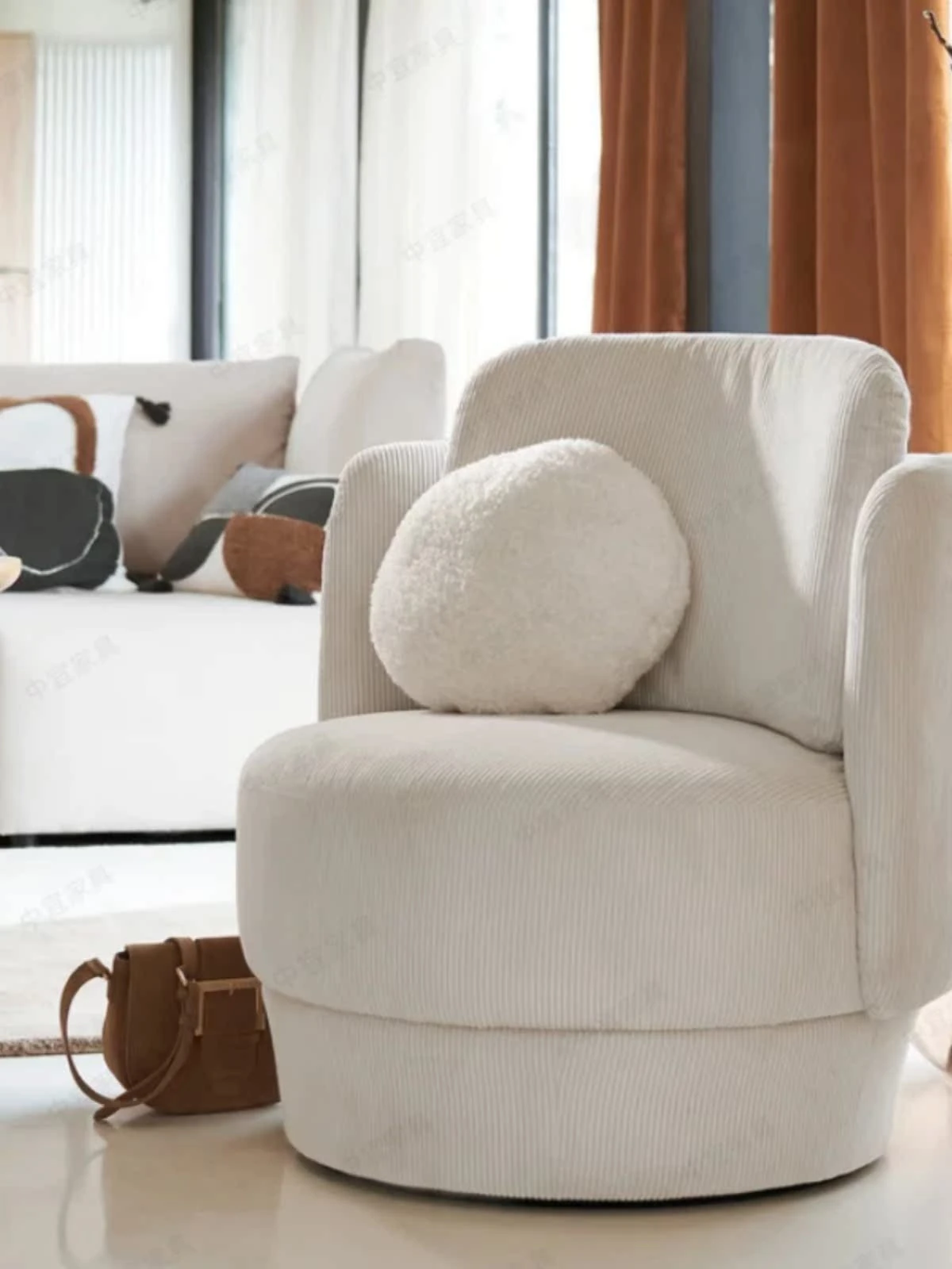 北欧風のラグジュアリーなデザイン!回転式ファブリック一人用ソファチェア - シンプルでモダンなリビング、ホテル、寝室にぴったりのリラックスチェア!