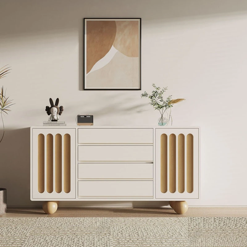 Stylish Nordic Solid Wood Sideboard - Minimalist French Buffet and Entryway Storage Cabinet for Chic Dining Spaces
