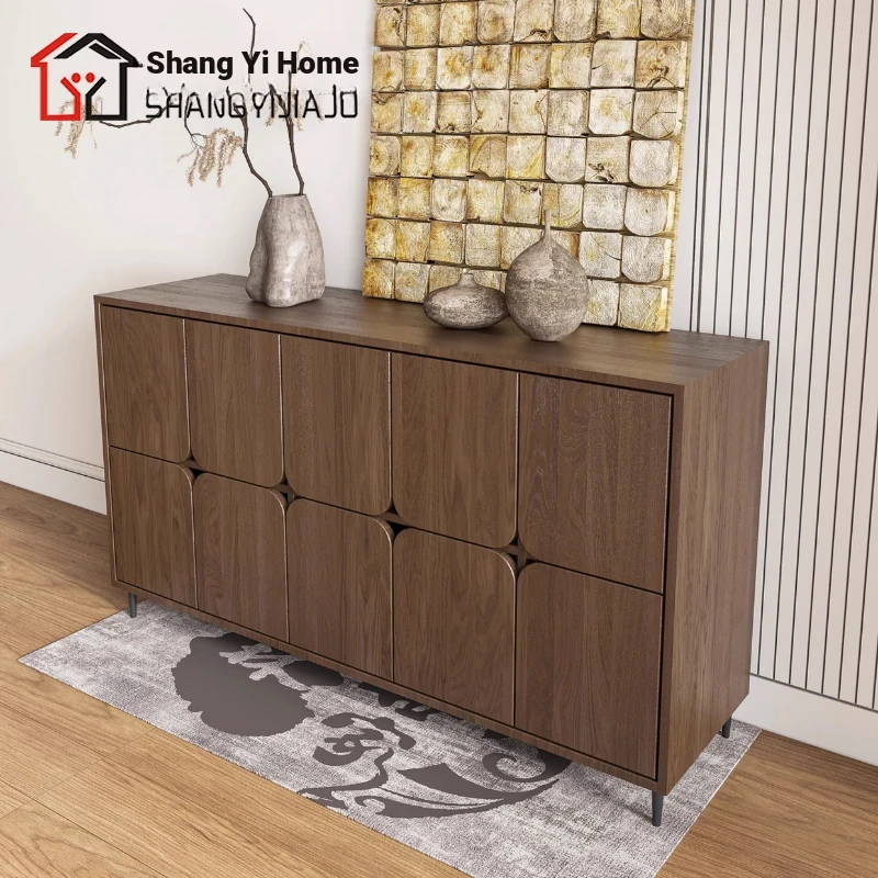 "Nordic Minimalist High-End Walnut Wood Storage Cabinet - Stylish Entryway and Living Room Sideboard for Elegant Organization"