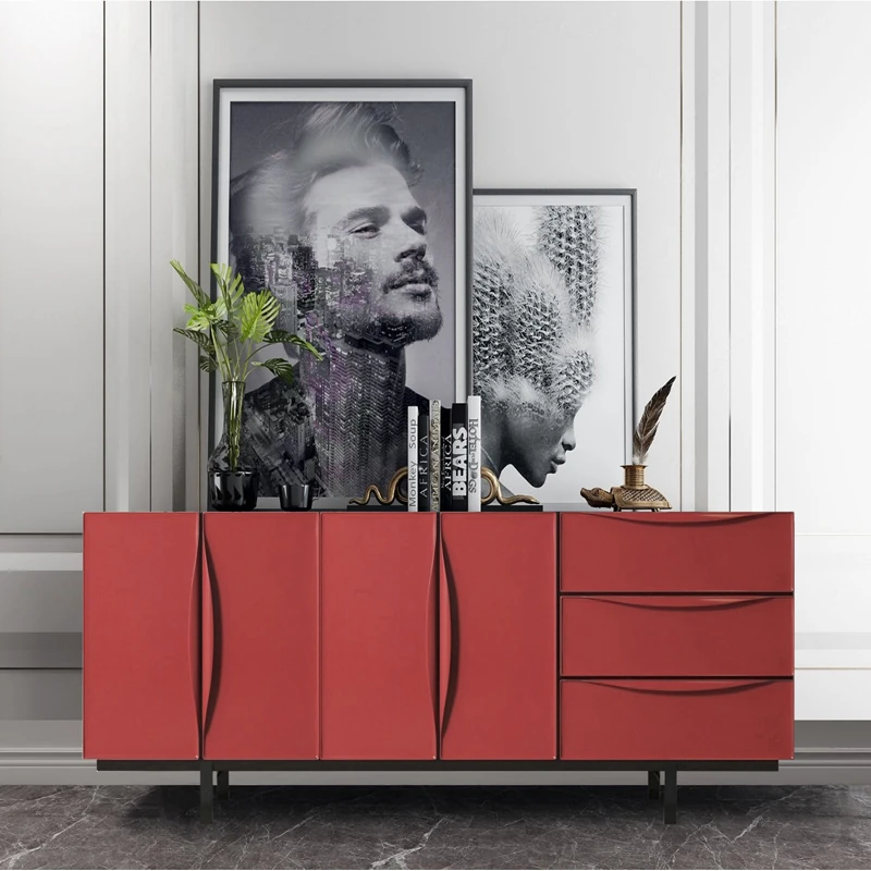 Italian Wooden Art Cabinet - Stylish Compact Entryway Sideboard with Drawers and Gloss Finish - Red Color for Small Spaces and Dining Areas