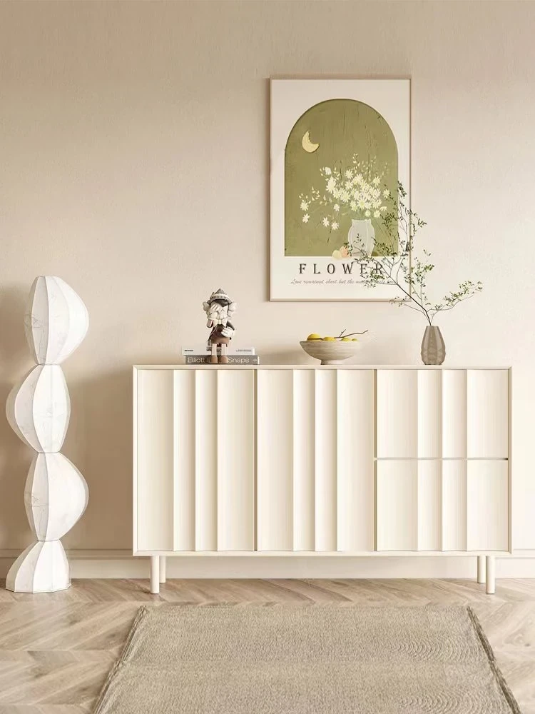 Cream Wabi-Sabi Style Solid Wood Sideboard – Ideal for Small Spaces, Perfect for Living Room or Entryway Storage, Wall-Mounted Display Cabinet for Organized Home Decor