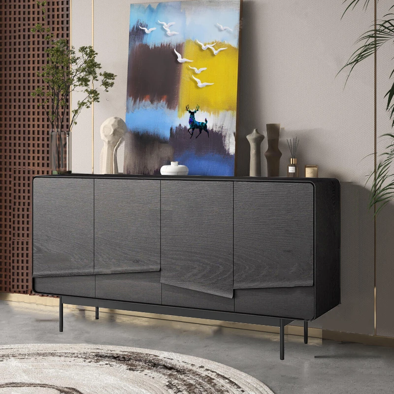 Sleek Minimalist Luxury Storage Sideboard - Italian Masterpiece Solid Wood Tall Cabinet with Vintage Charm in Black