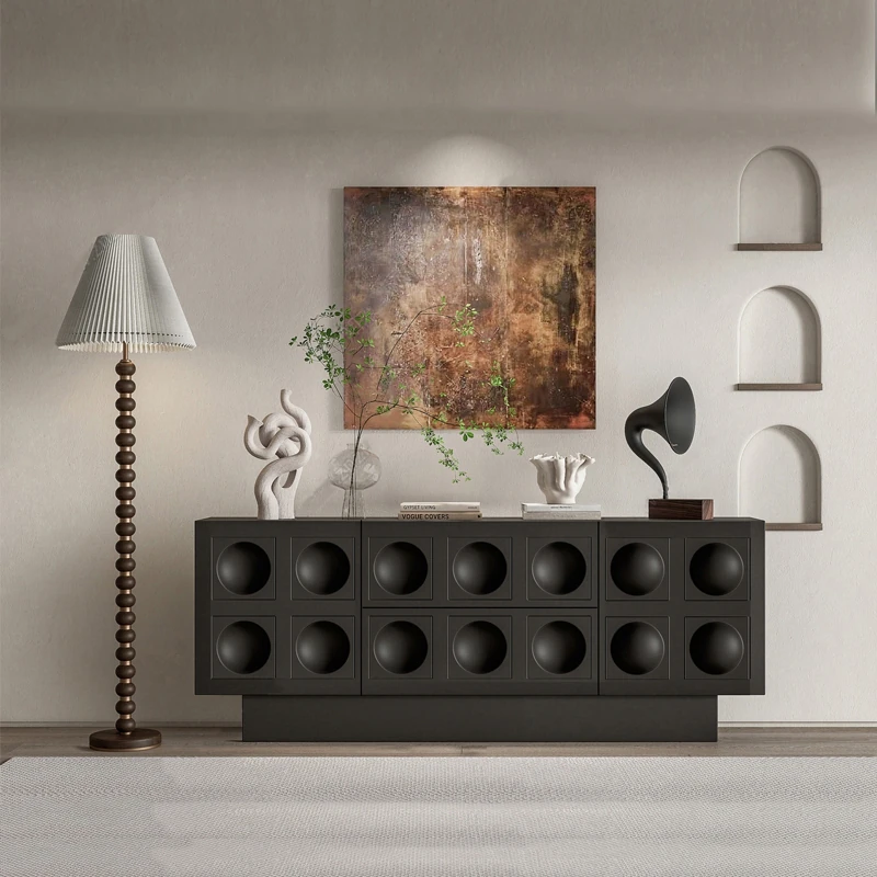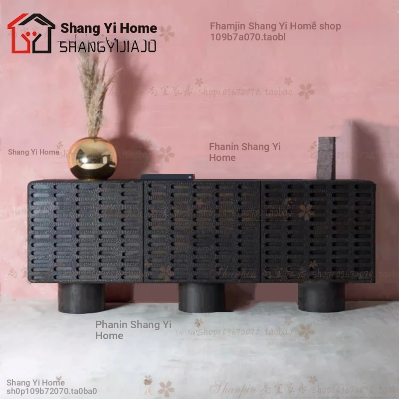 Nordic Modern Solid Wood Lacquer Sideboard – Vintage Storage Cabinet for Your Living Room in Wabi-Sabi Style – Elegant Entryway Console for a Touch of Luxury