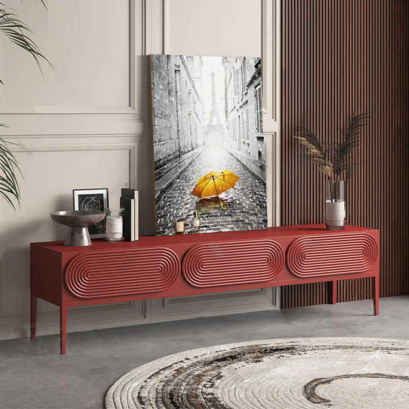 Scandinavian Style Lacquered TV Stand - Chic and Creative Floor-Standing Entertainment Unit for Living Room, Elegant Entryway Cabinet, Designer TV Console.