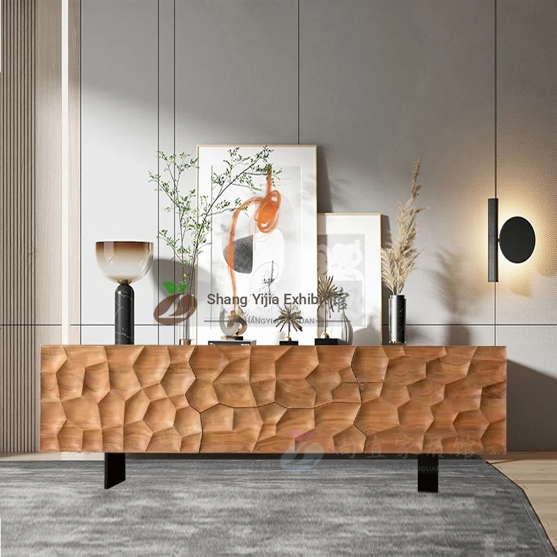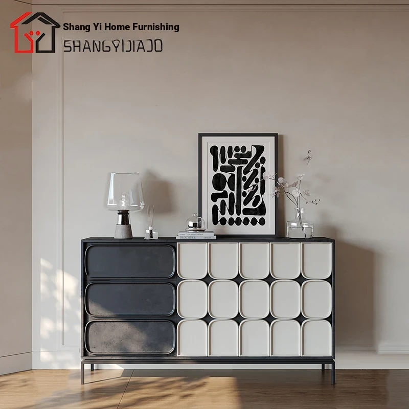 Italian Minimalist Luxury Entrance Cabinet - Modern Solid Wood Sideboard with Artistic Design for Stylish Storage and Organization in Your Home.