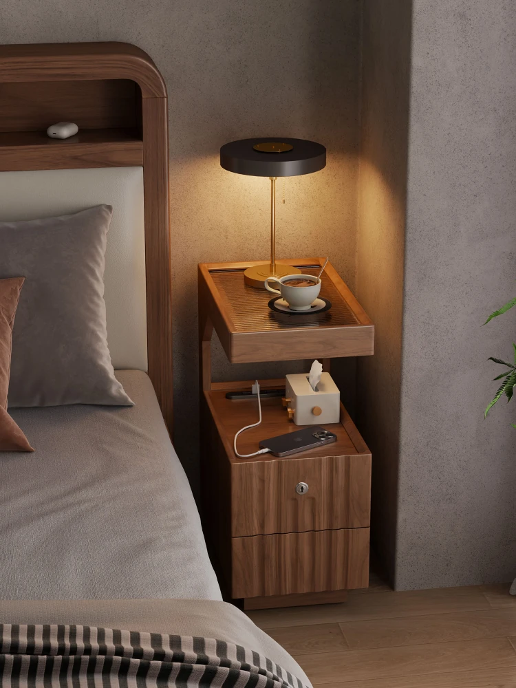 DuoSu Mini Solid Wood Nightstand - Ultra-Slim 25cm Bedside Cabinet, Perfect for Tight Spaces - Stylish Storage Solution for Your Bedroom