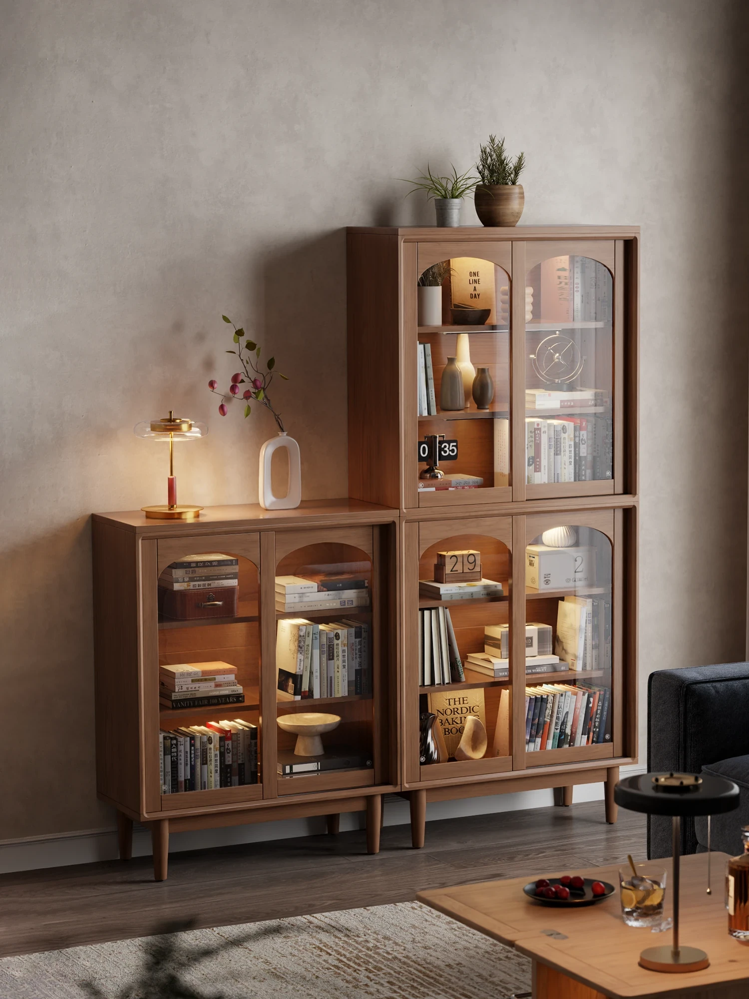 Vintage Solid Wood Glass Door Low Bookcase - Half Wall Storage Cabinet for Small Spaces, Stylish Organizer for Your Home