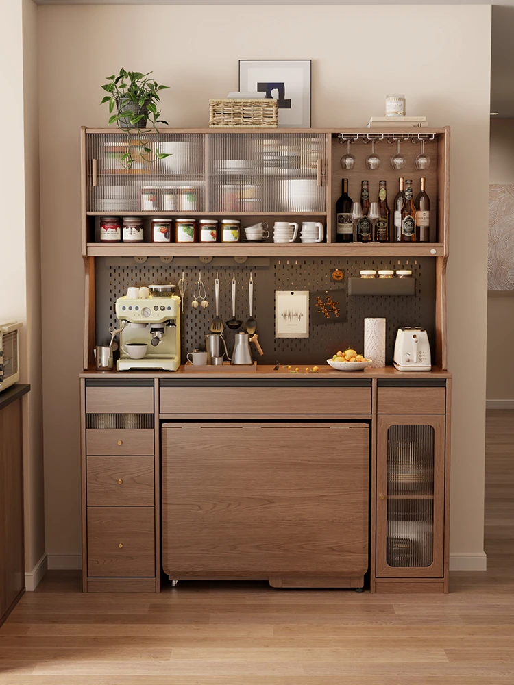 Solid Wood Sideboard Cabinet - Space-Saving Wall-Mounted Design for Small Living Rooms, Perfect for Tea, Coffee, and Kitchen Storage. Ideal Home Bar Cabinet for Efficient Organization.