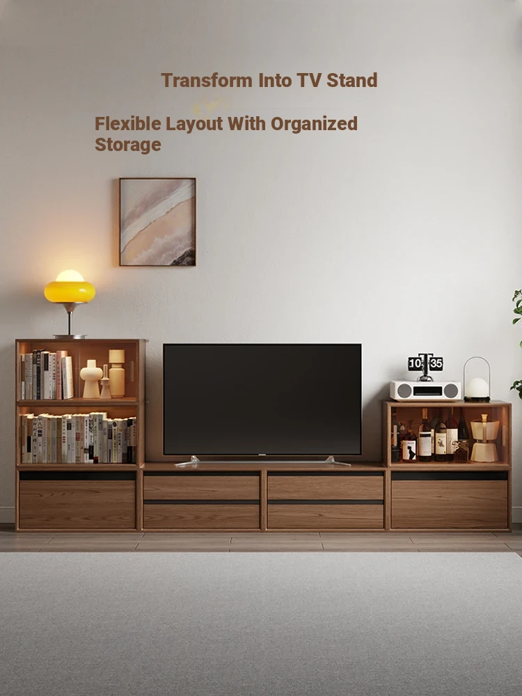 Elegant Wabi-Sabi High-End TV Cabinet in Black Walnut – Creative Minimalist Design, Luxurious Solid Wood Audio-Visual Storage Console, Perfect for Modern Living Spaces.