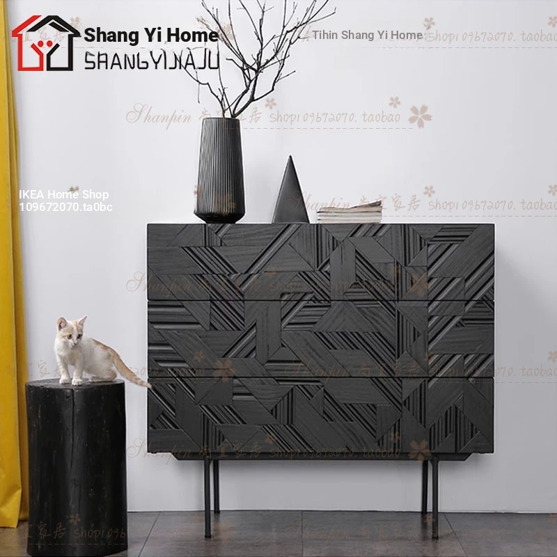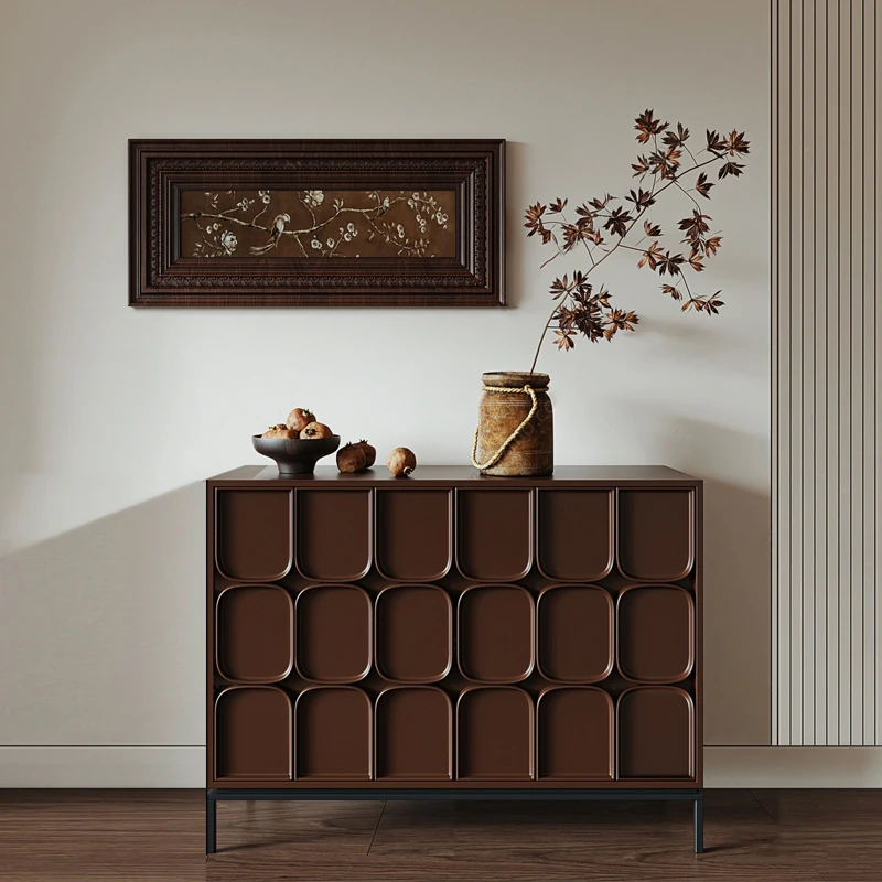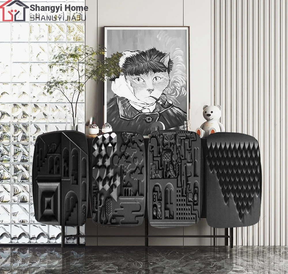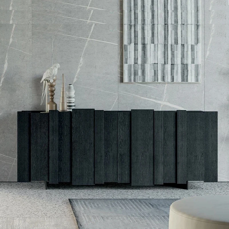 "Italian Black Oak Entryway Dining Sideboard & Tea Cabinet – Scandinavian Design with Creative Irregular Shapes for Cozy Ambiance – Perfect for Modern Homes"