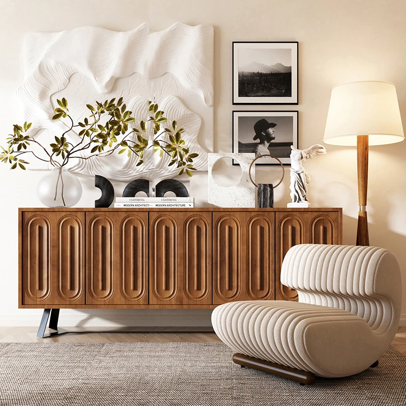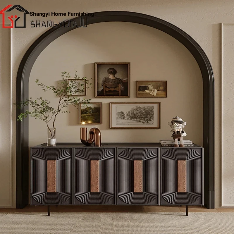 Modern American Light Luxury Sideboard with Decorative Carvings – Stylish and Functional Storage Cabinet for Dining and Entryway – Elevate Your Home Décor with Contemporary Elegance