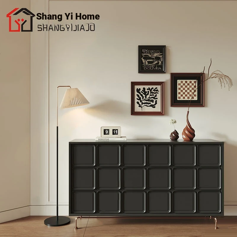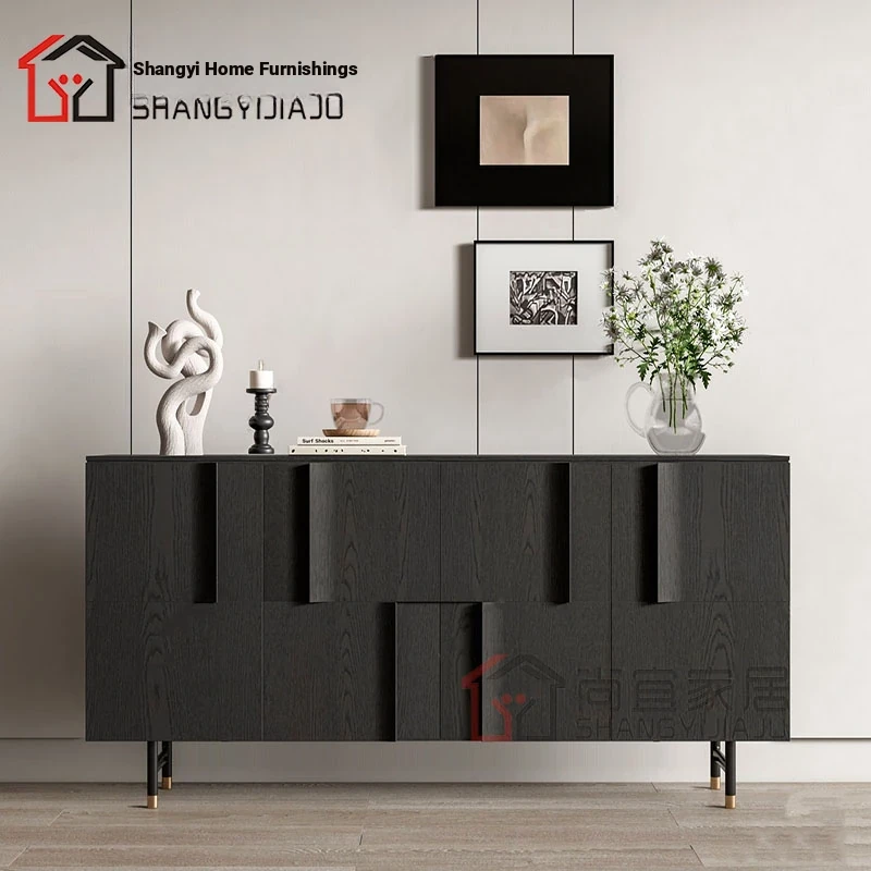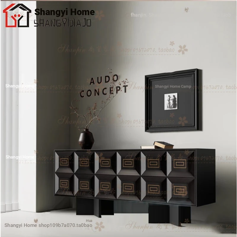 Nordic Style Black Solid Wood Minimalist Sideboard - Modern Luxury Entryway Cabinet, Italian Minimalist Living Room Tea Cabinet - Perfect for Chic Home Decor!
