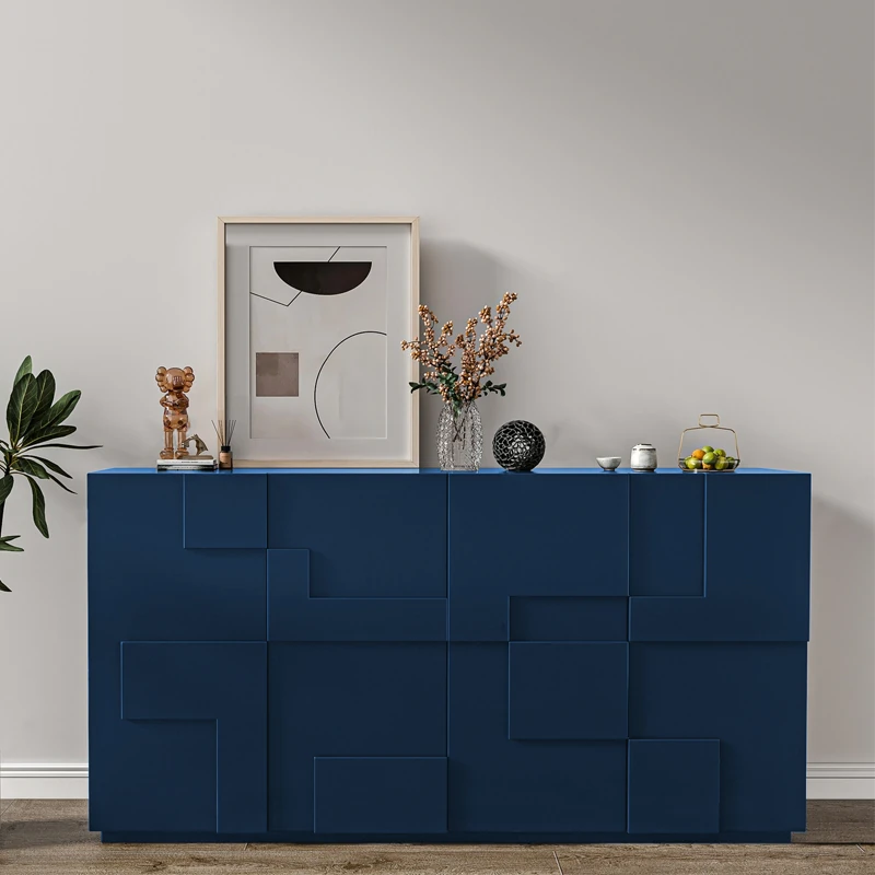 Nordic Modern Solid Wood Painted Buffet Cabinet - Vintage Storage Unit for a Wabi-Sabi Living Room, Perfect for Entryway and Stylish Home Décor.