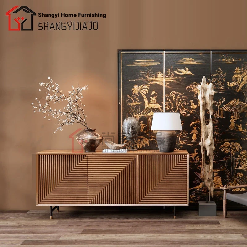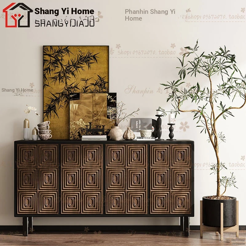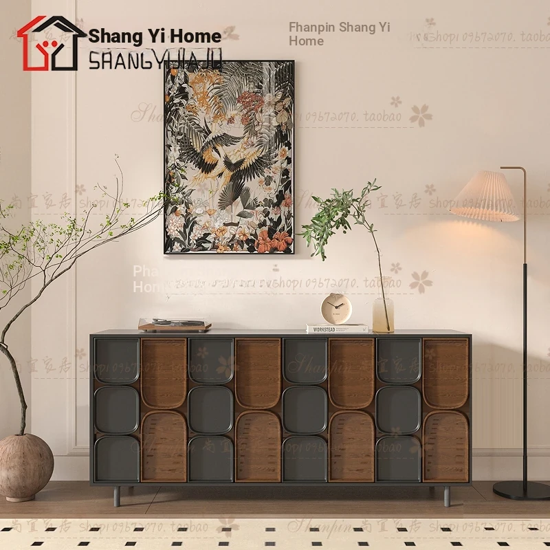 Scandinavian Wabi-Sabi Style Retro Solid Wood Entrance Sideboard – Elegant Minimalist Design for Living Room & Dining Room Storage Solutions