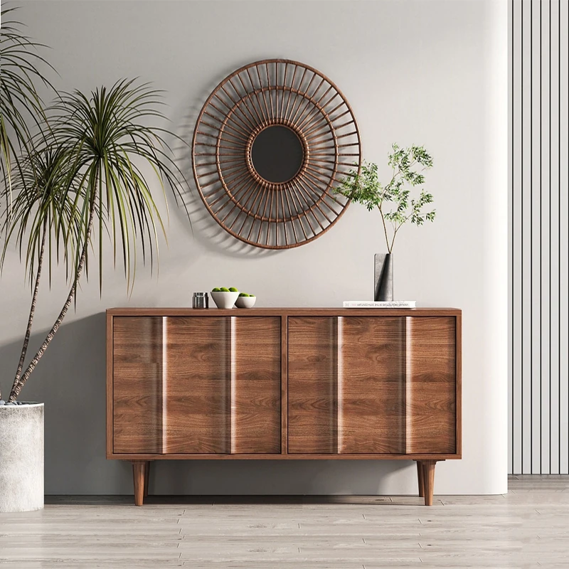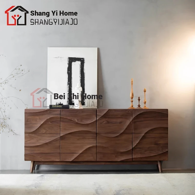 "North American Walnut Solid Wood Entryway Sideboard – Elegant Storage Cabinet for Dining Rooms and Small Spaces, Featuring a Chic Wabi-Sabi Design with Wine Storage and Entryway Organization"