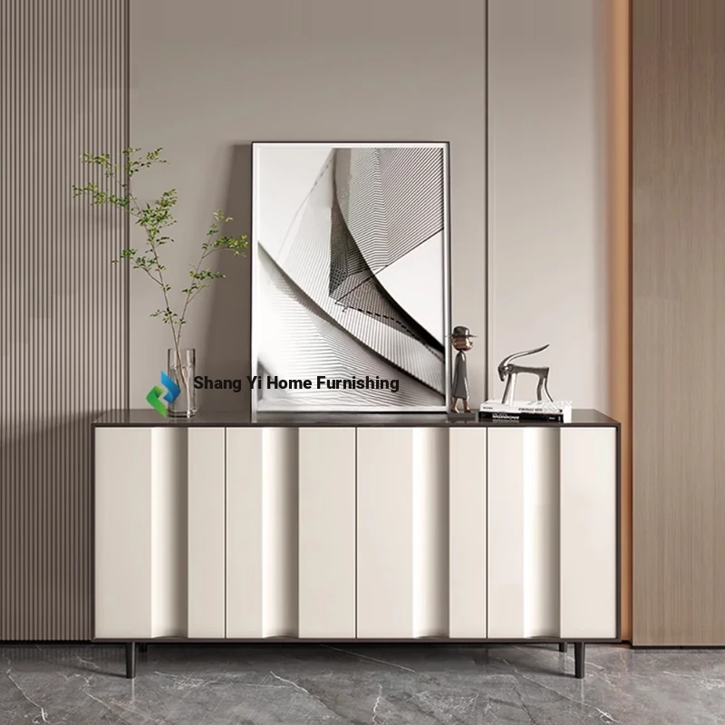 Nordic Solid Wood Lacquered Sideboard Cabinet - Modern Minimalist Tea and Snack Storage Unit, Italian Light Luxury Entryway Cabinet for Stylish Organization and Storage Solutions.