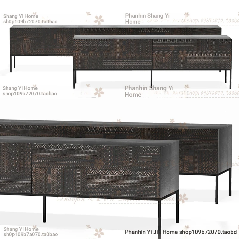 Nordic Belgian Minimalist Solid Wood TV Cabinet with Hand-Carved Artwork - Wabi-Sabi Style Living Room TV Stand, Perfect Blend of Simplicity and Elegance
