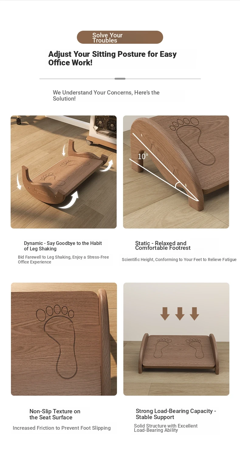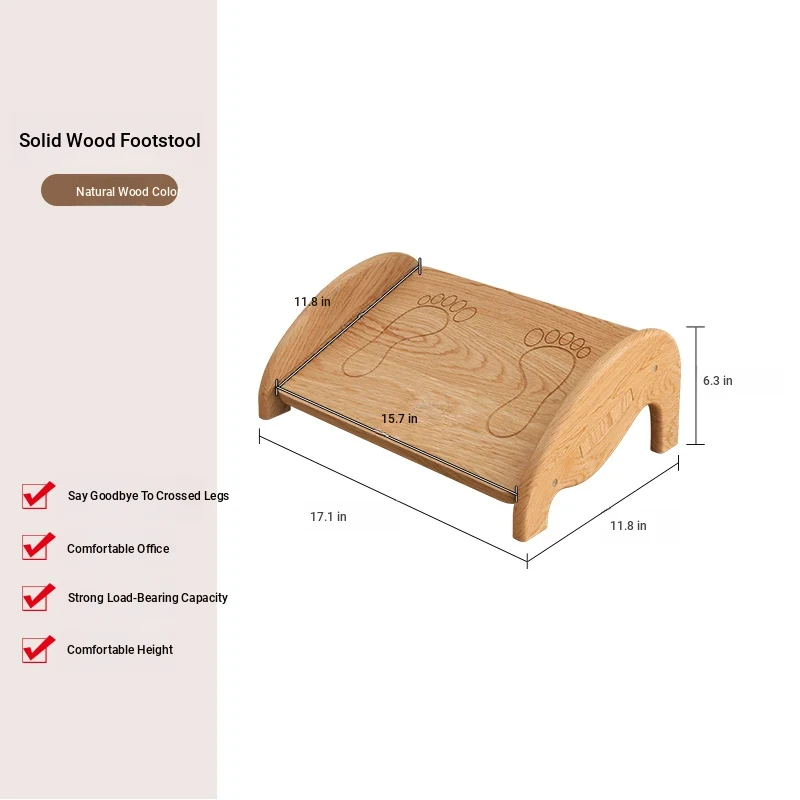 Comfortable Solid Wood Footrest Stool - Perfect for Under-Desk Use, Ideal for Relaxing Your Legs and Feet while Working or Studying. Ergonomic Design for Enhanced Comfort and Support.