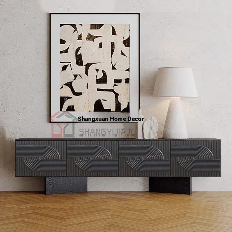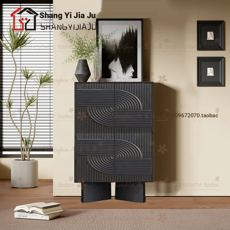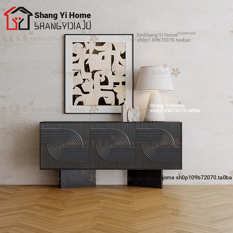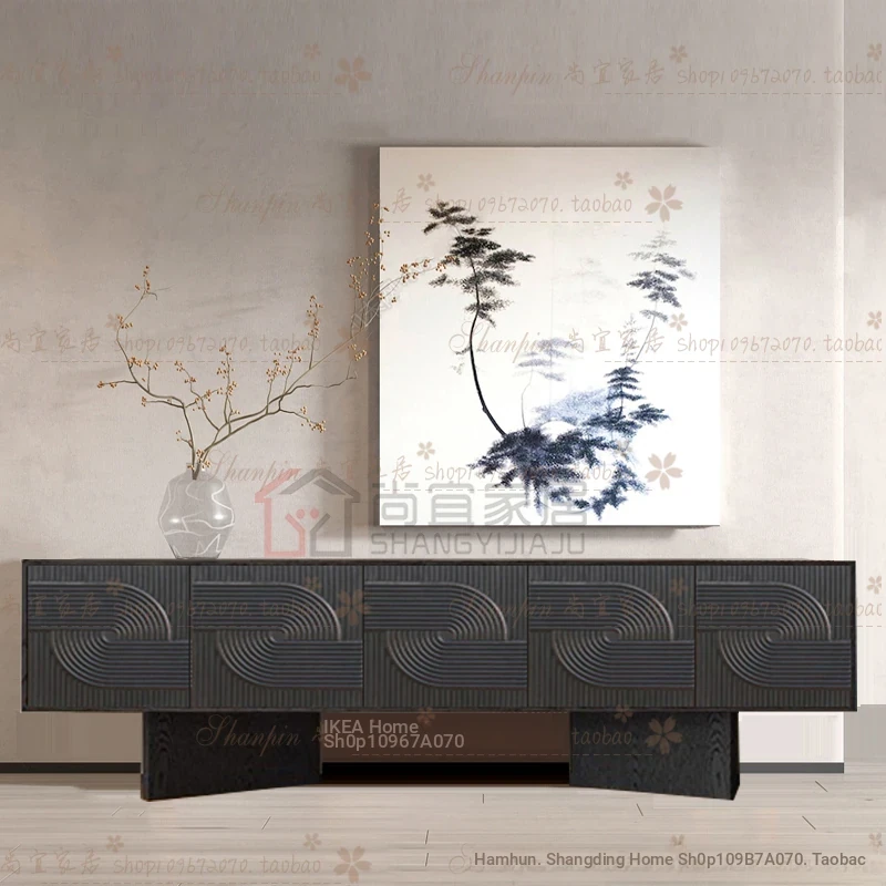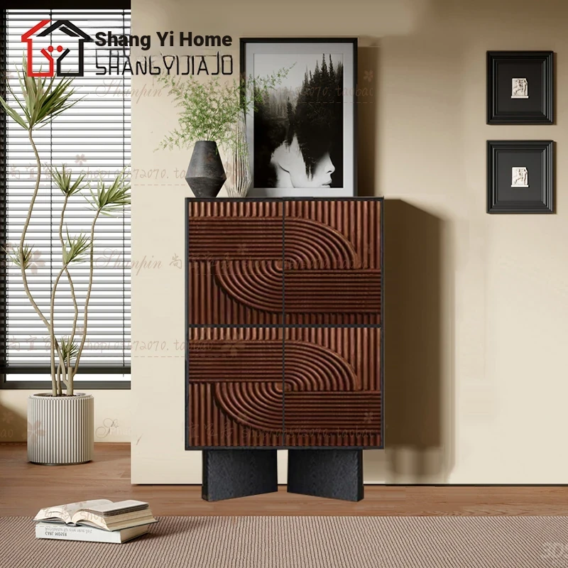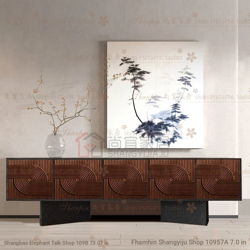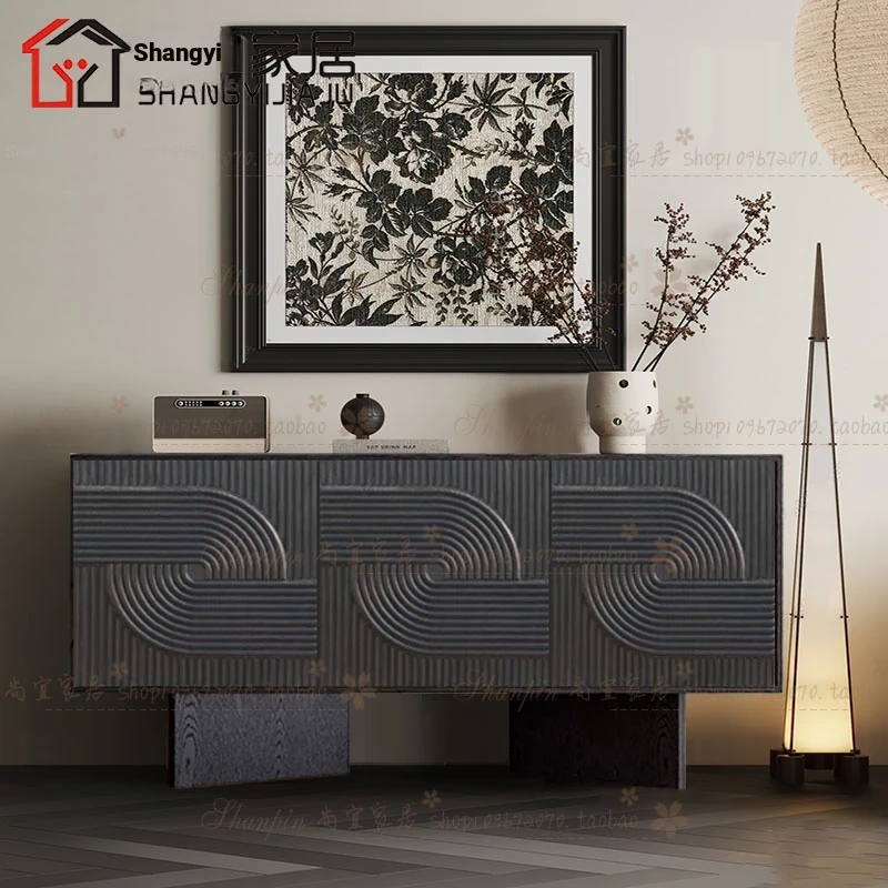 レトロな無垢材のダイニングサイドボード|アメリカンアートスタイルの玄関キャビネット|個性的なデザインのリビングテレビボード|収納力抜群のサイドキャビネット